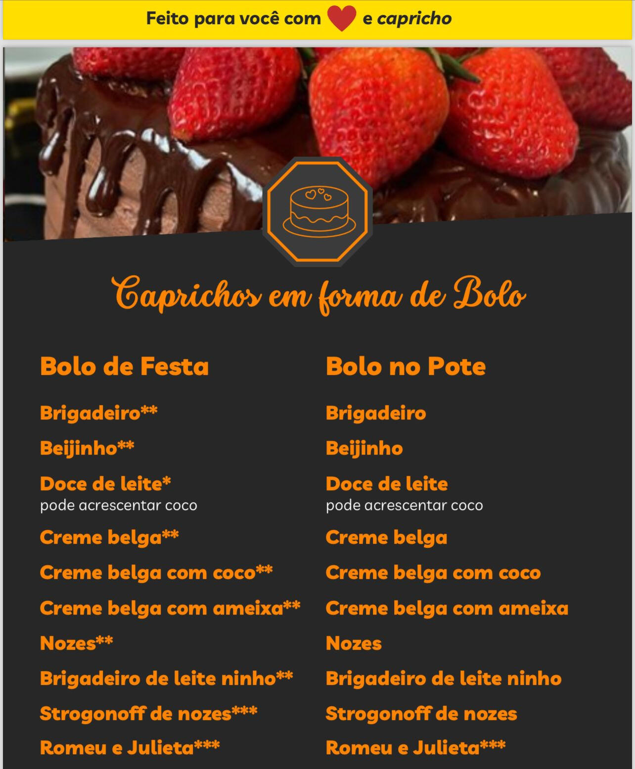 A Caprichos By Nanda pode se adaptar aos seus desejos, tanto na variedade quanto nas restrições alimentares.Você tem alergia à lactose? Alergia à glúten? Não come açúcar? Fale comigo e juntos podemos encontrar sua solução!