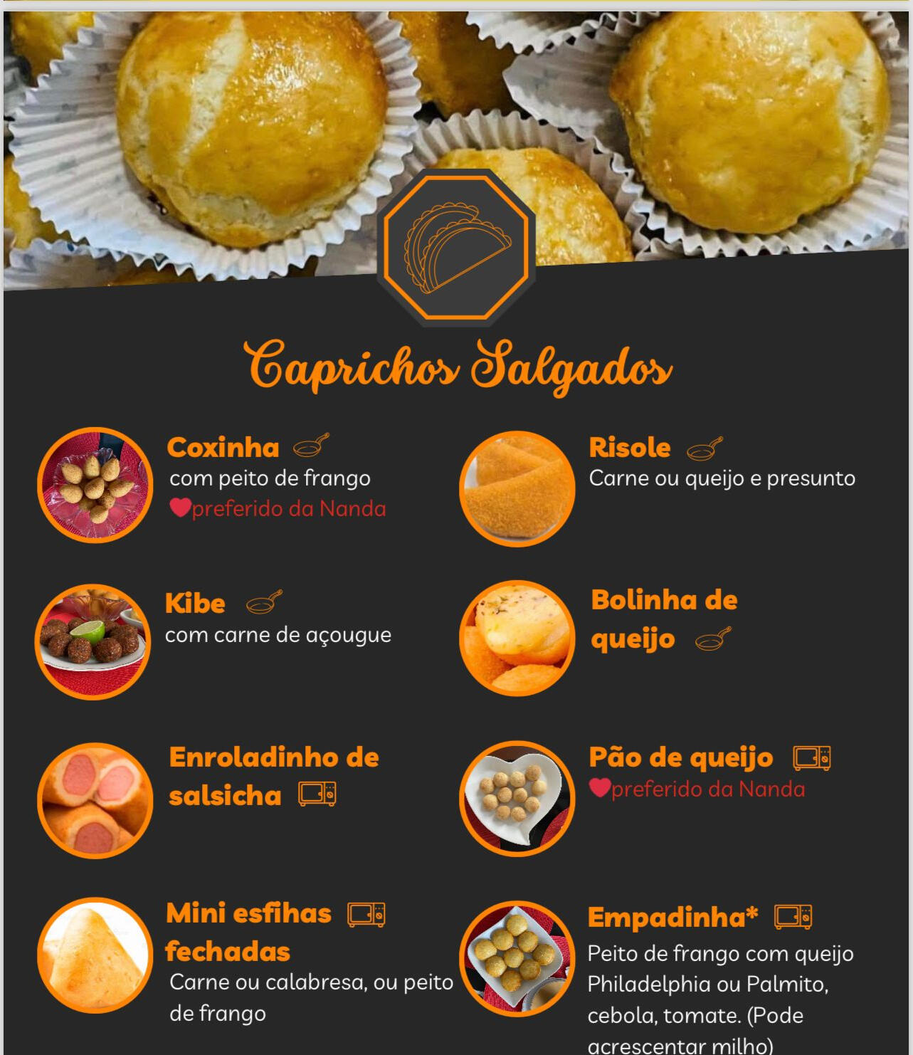 De Coxinha, bolo de aniversário, pão de queijo, pastel de feira e até ovo de páscoa! Você encontra toda a sua comida afetiva para te dar um calor no coração por aqui, com a Caprichos By Nanda!